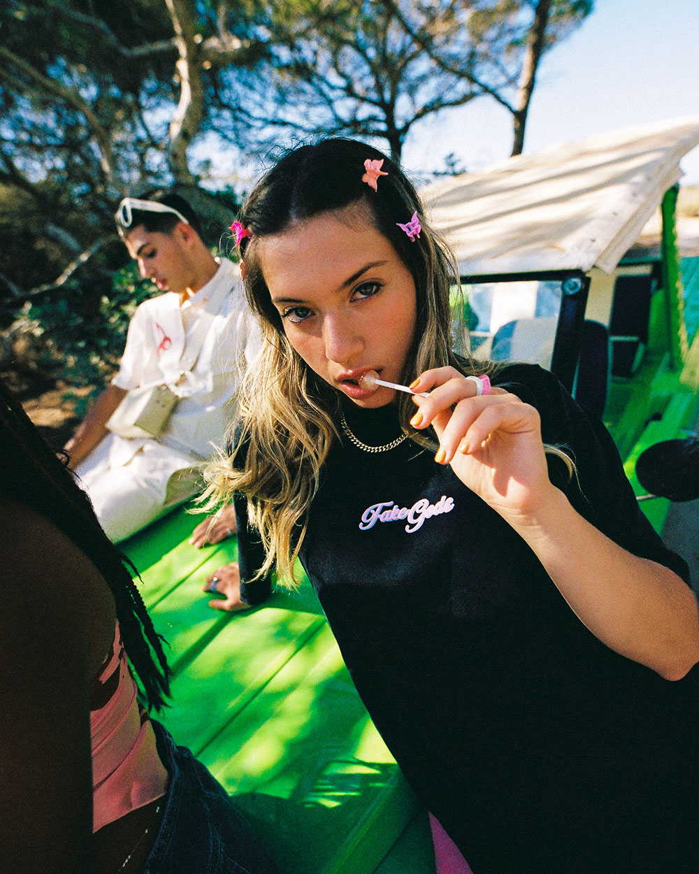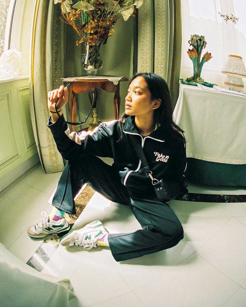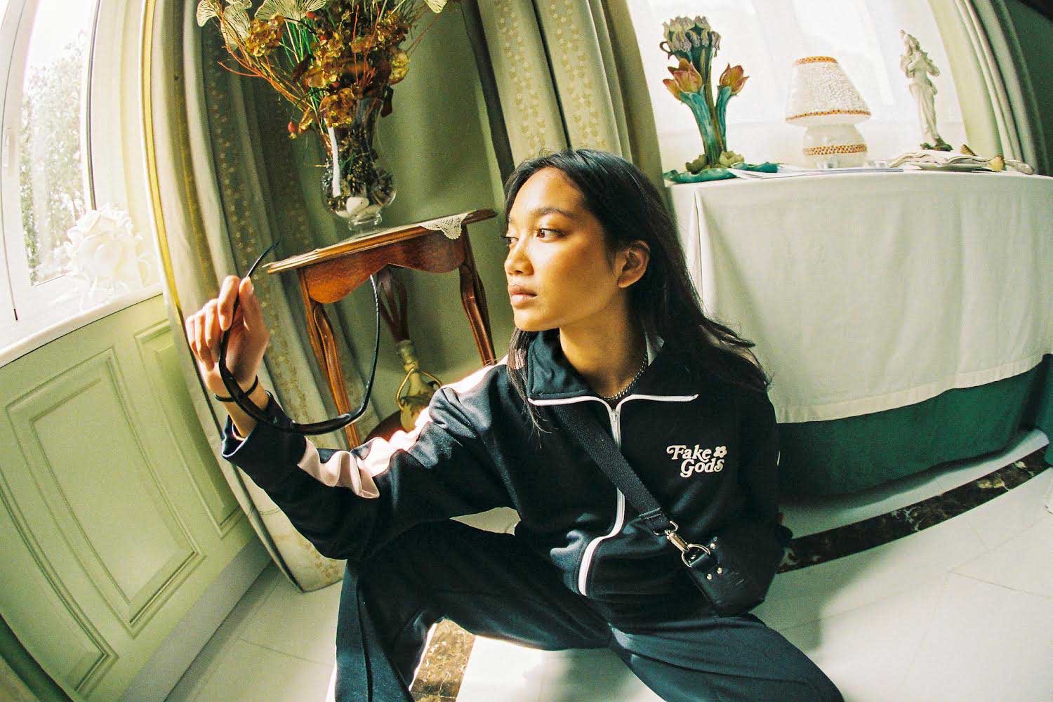 Detalle: Logo Fake Gods impreso en toda la superficie.