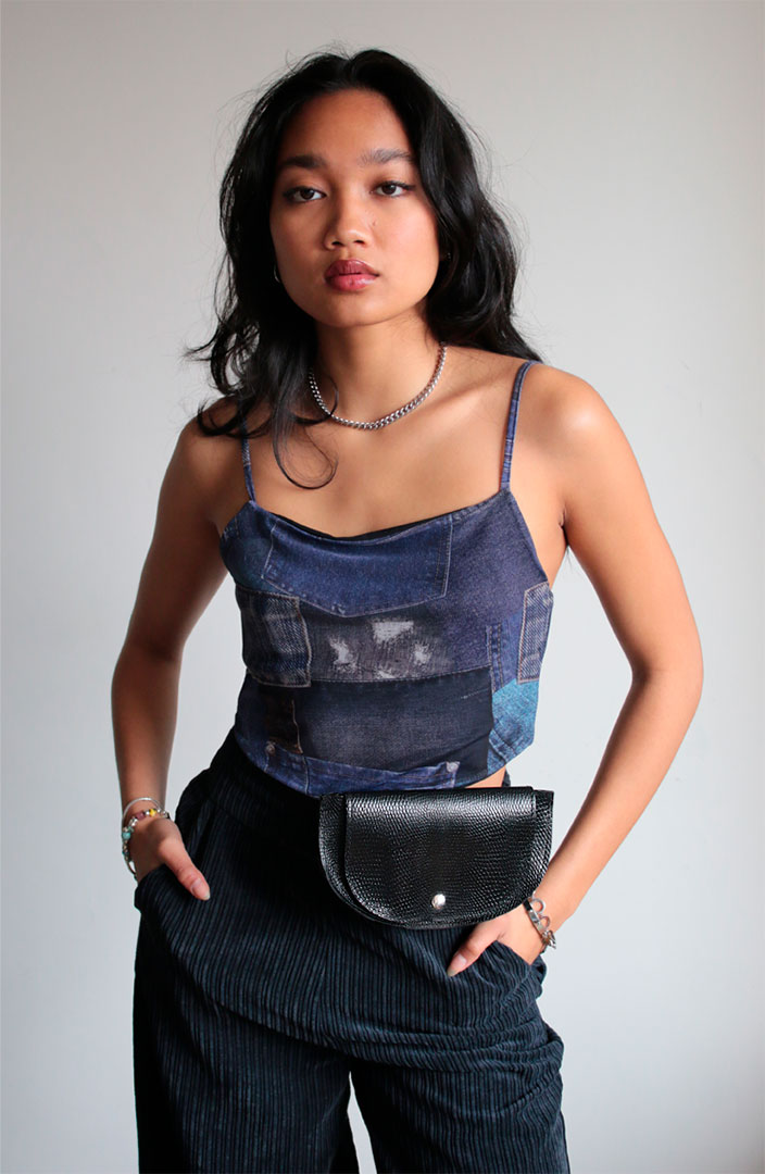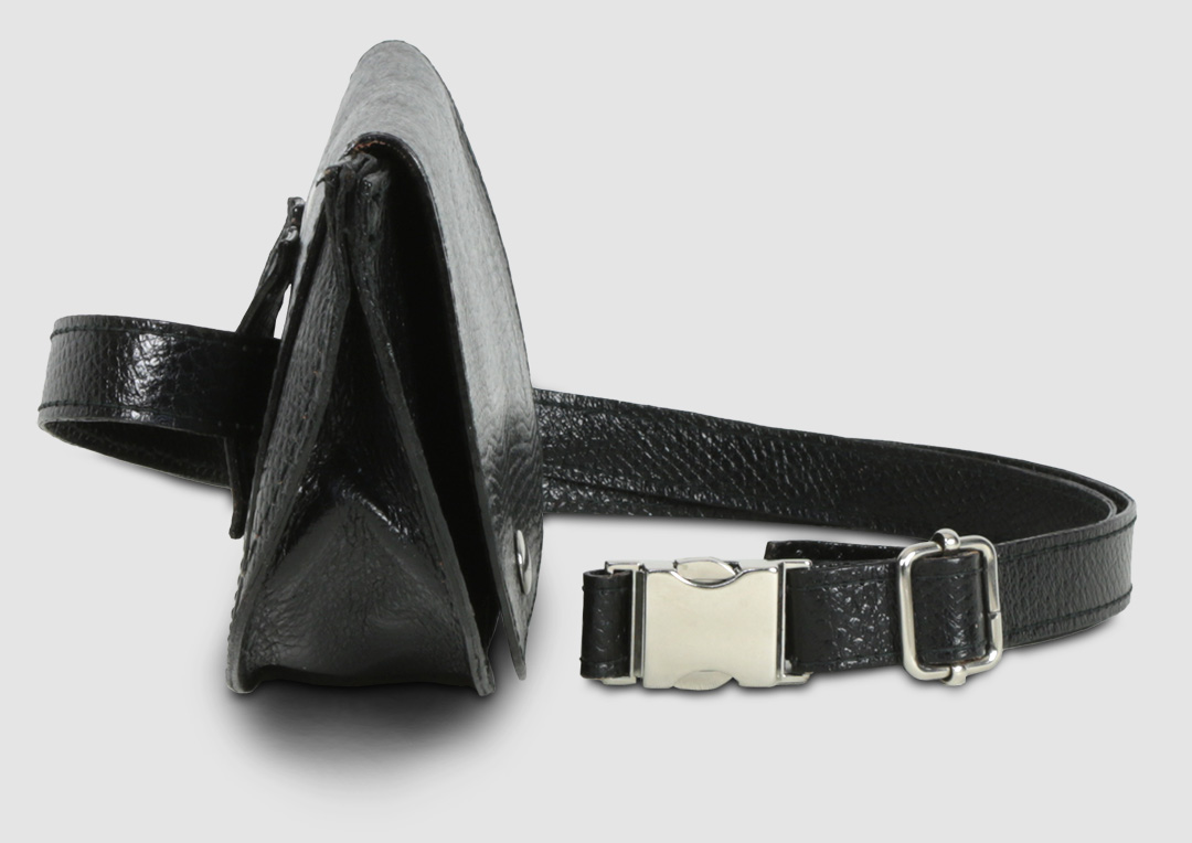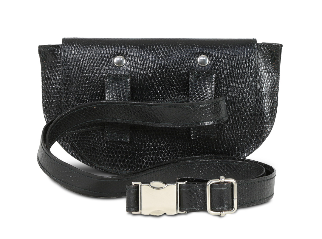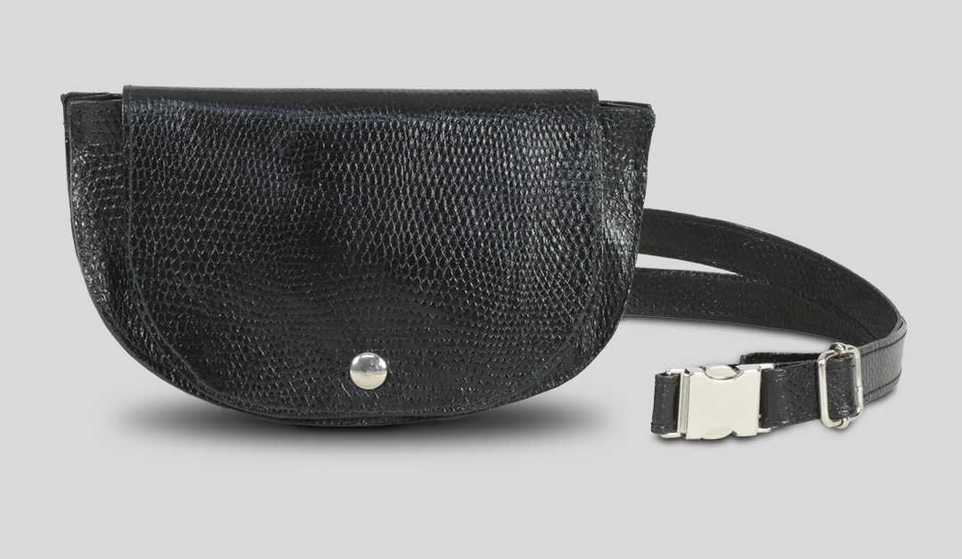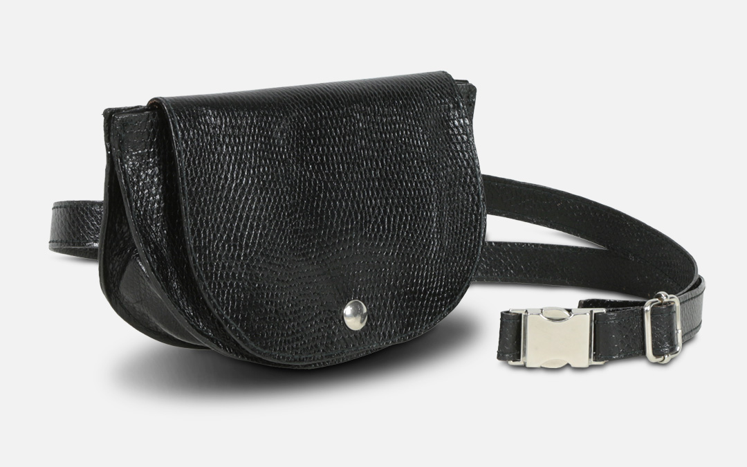 Bolso riñonera de tamaño reducido, ideal para llevar en la cintura o como bandolera.