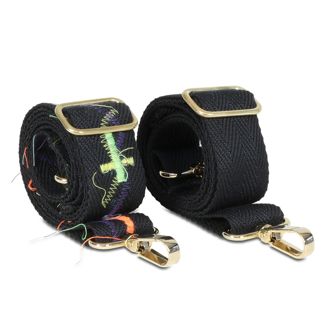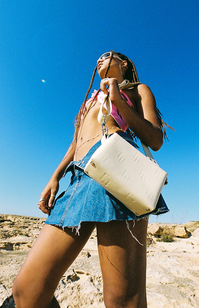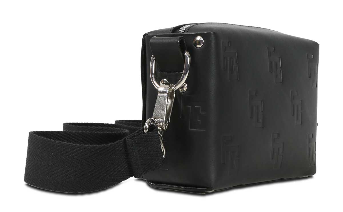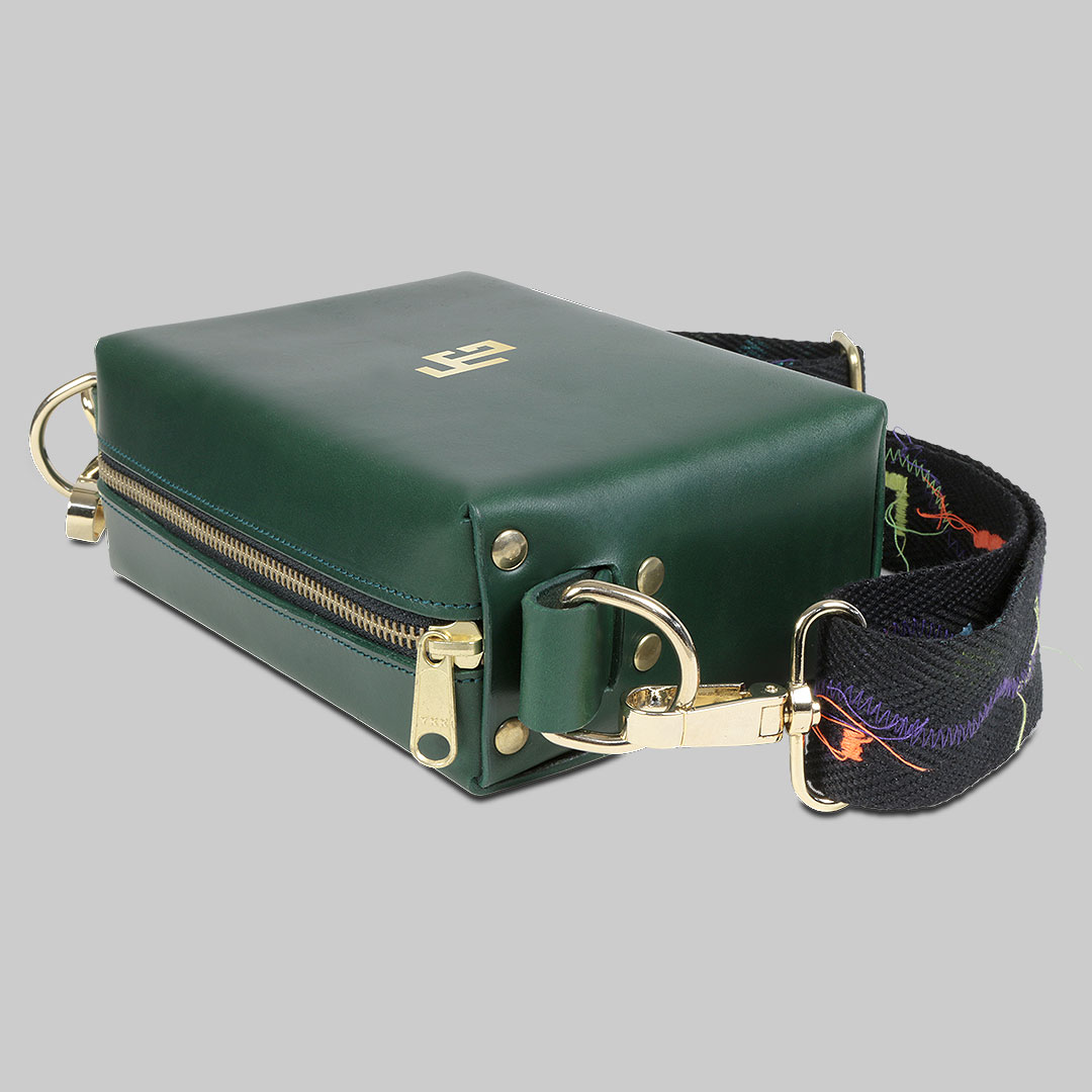 El bolso FW21 cuenta con un cierre de cremallera y bandolera de color negro mate, además de una correa intercambiable con bordados y puntadas de los colores característicos de la colección. El diseño, inspirado en las piezas de equipaje clásicas de Paris, presenta una superficie exterior de piel de vacuno 100% natural, sellado con nuestro logo bañado en oro, además de un interior en terciopelo, con una forma cuadrangular que evoca a los tradicionales fabricantes de baúles, en combinación con el exotismo de la moda actual.