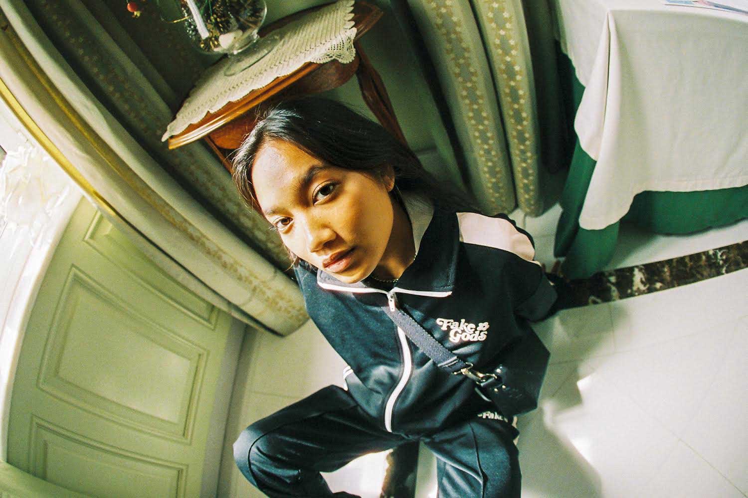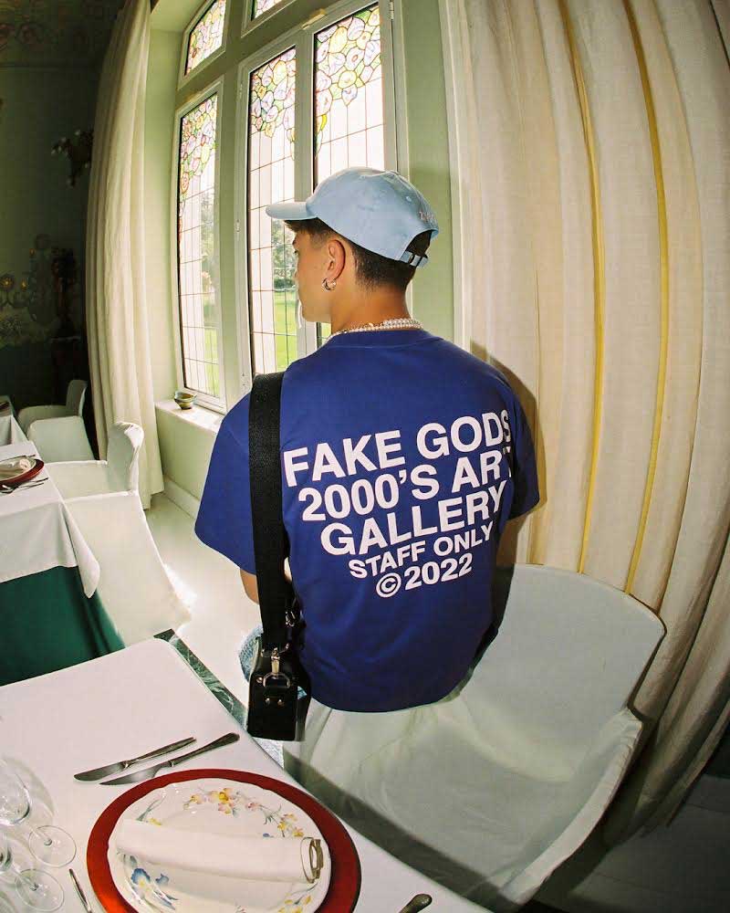 Detalle: Logo Fake Gods impreso en toda la superficie.