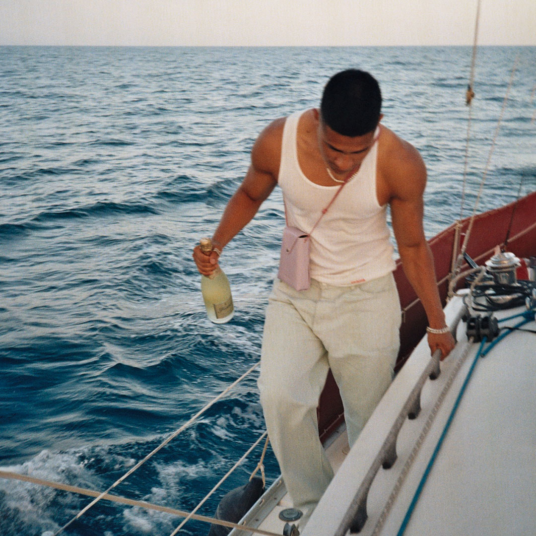 Cinta: Cuerda de cuero regulable por nudos con tinte a juego.
